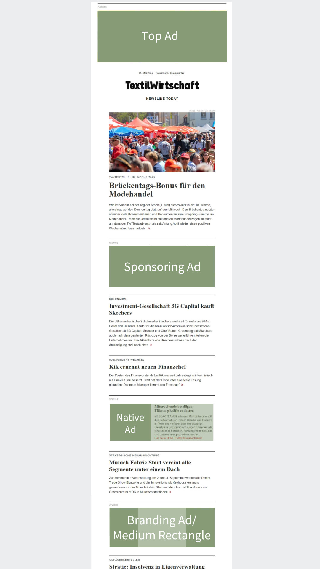 Newsline today - Top news of the day - published every weekday at 5 p.m. - 40,500 recipients | | Newsline weekly - Top stories of the week - published every Friday morning - 41,200 recipients | | |