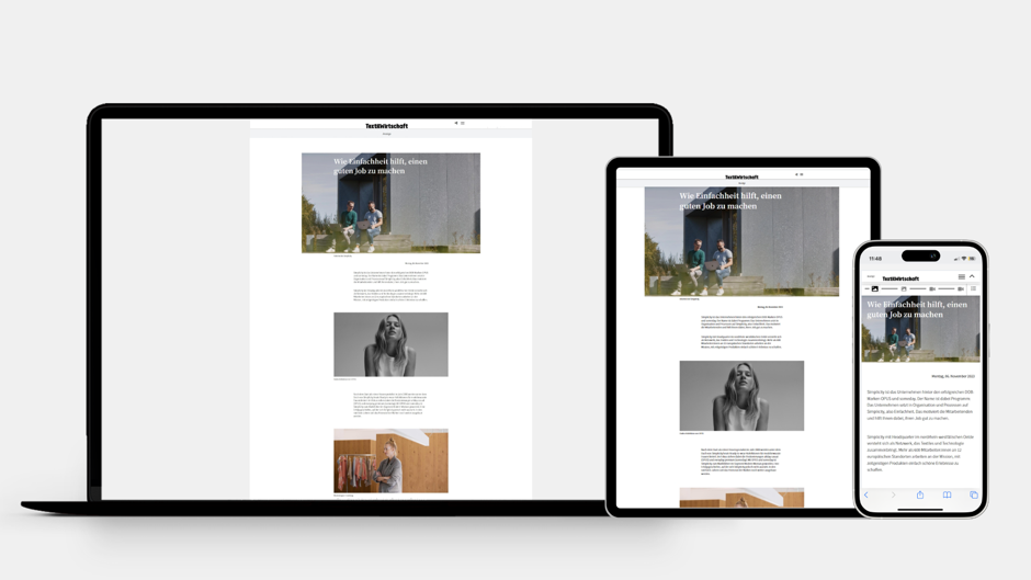 For maximum visibility, the Premium Digital Advertorial package includes an extensive accompanying campaign. This includes the placement of the Premium Digital Advertorial in our newsletters: on the first day in TextilWirtschaft today, on the second day in TextilWirtschaft Fashion Management, and on the fifth day in TextilWirtschaft weekly. Additionally, the Premium Advertorial is promoted through a banner on TextilWirtschaft.de. This ensures your content remains highly visible and continues to reach your target audience with sustained impact throughout the week.